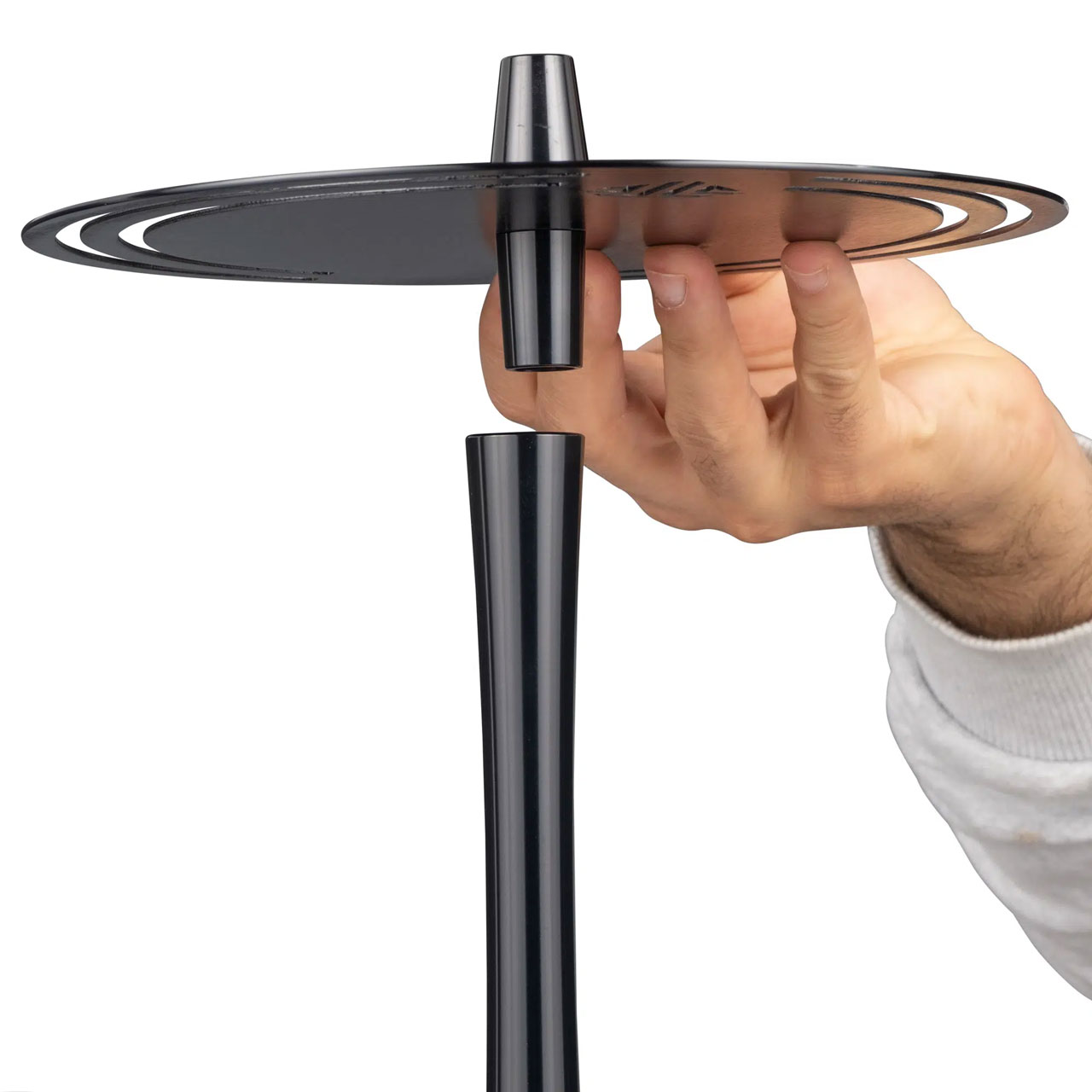 The Hookah Tsar H-One is approximately 45 cm high and has a simple design with an elegant all-black look. The coloured border on the ring adds a colourful touch to this high-end Hookah , and the butterfly plate completes the aesthetics of this slender Hookah .